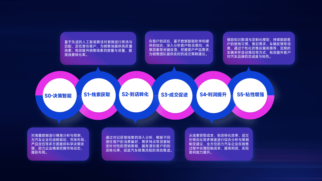 通过拓宽潜在客户来源、、优化线索分配并提高到店转化率,,以增强销售效率。。同时,,,利用线索数据不断优化分析模型,,,有效提升转化率,,,,扩大营销影响力。。